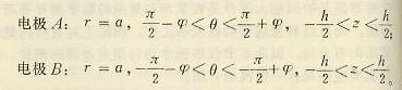如圖3-69所示,短筒流量計有兩個點狀電極A和B,采用柱坐標(biāo)是它們的位置為: