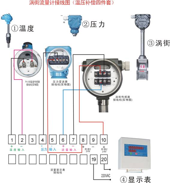 無(wú)錫優(yōu)量公司 四件套蒸汽流量計(jì) 實(shí)物接線圖 |