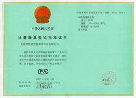 型式批準(zhǔn)證書(shū)(江蘇省質(zhì)量監(jiān)督局發(fā)) |