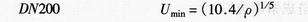對于氣體和蒸汽,不同公稱通徑最低流速的經驗公式如下: